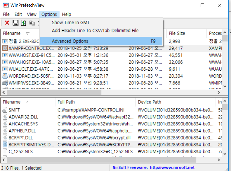 다운로드 - https://nirsoft.net/utils/win_prefetch_view.html