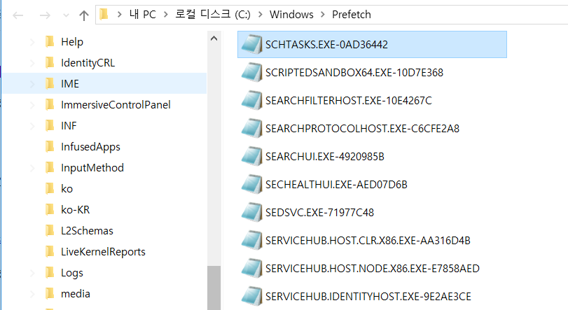 윗 부분이 응용 프로그램 프리패치 파일이고